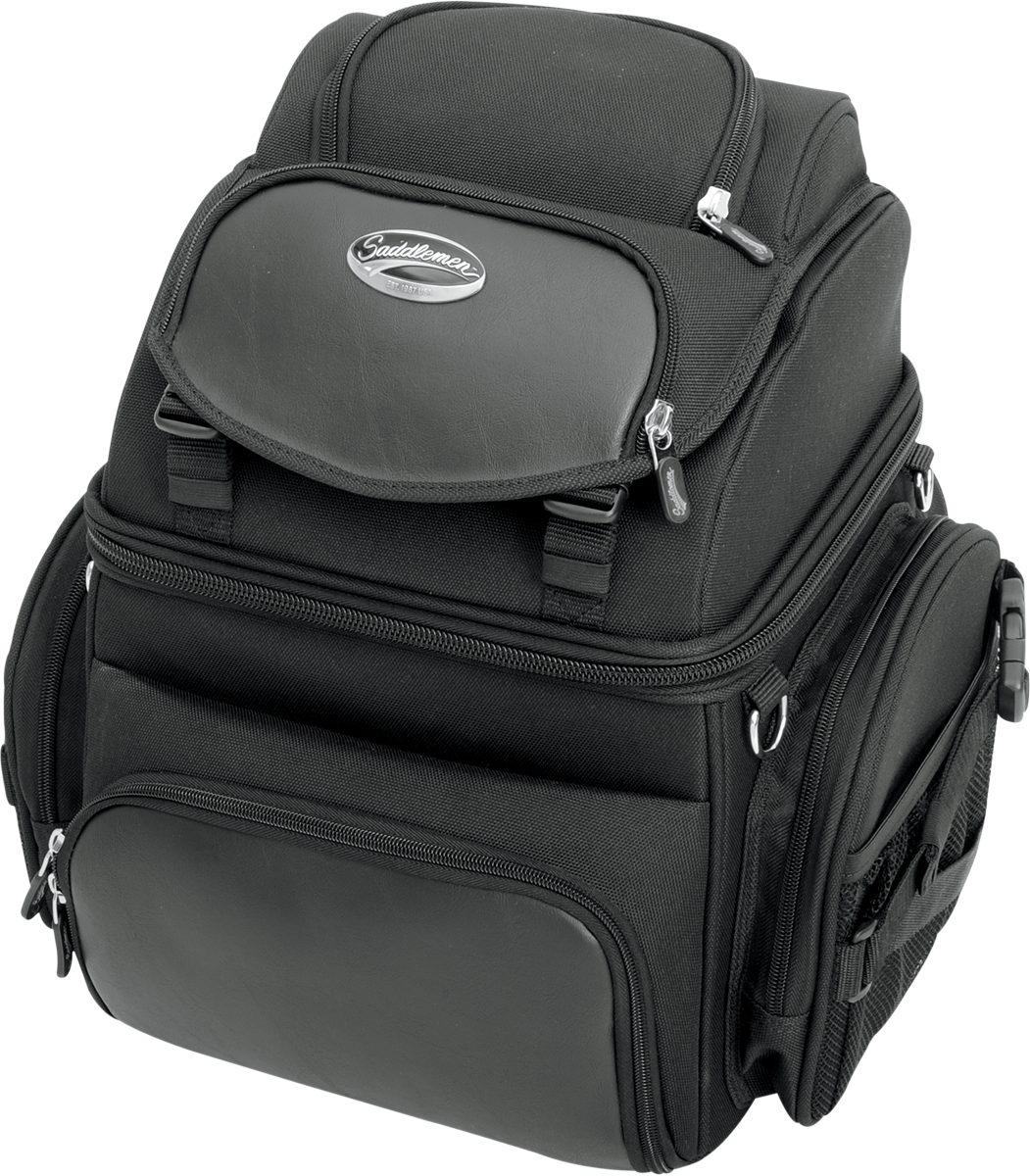 Two mounting systems included: Saddlemen's "Versa-Mount" under-seat yoke and harness, and an adjustable sissy bar strap system that easily attaches bag to your motorcycle's seat, luggage rack or sissy bar