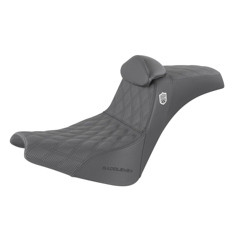 - Crafted with Saddlemen’s carbon fiber front with black gripper lumbar in passenger area
