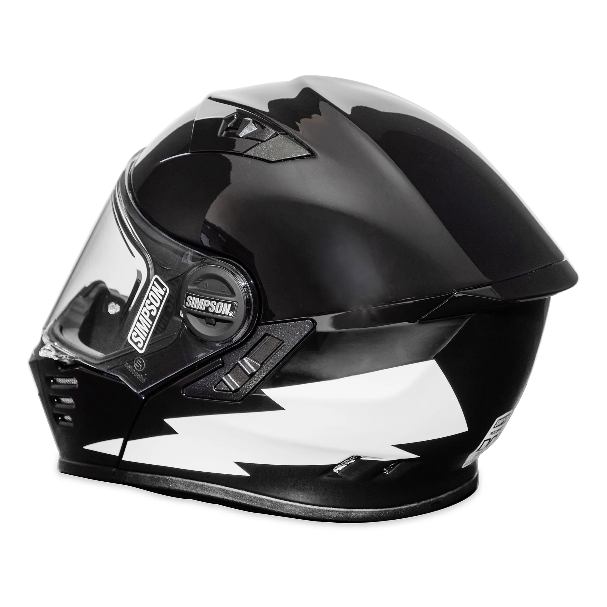 Modular function and convenience meets Simpson style and attitude. One hand modular function, communication system ready, Pinlock system compatible, and internal sun shield are highlights of the new Mod Bandit. Ready to ride across town or around the world, the Mod Bandit offers the function and style you are looking for. Helmet ships with one clear face shield installed, additional face shields may be purchased separately.